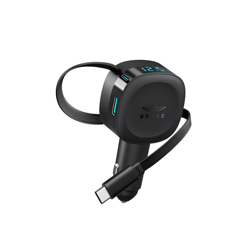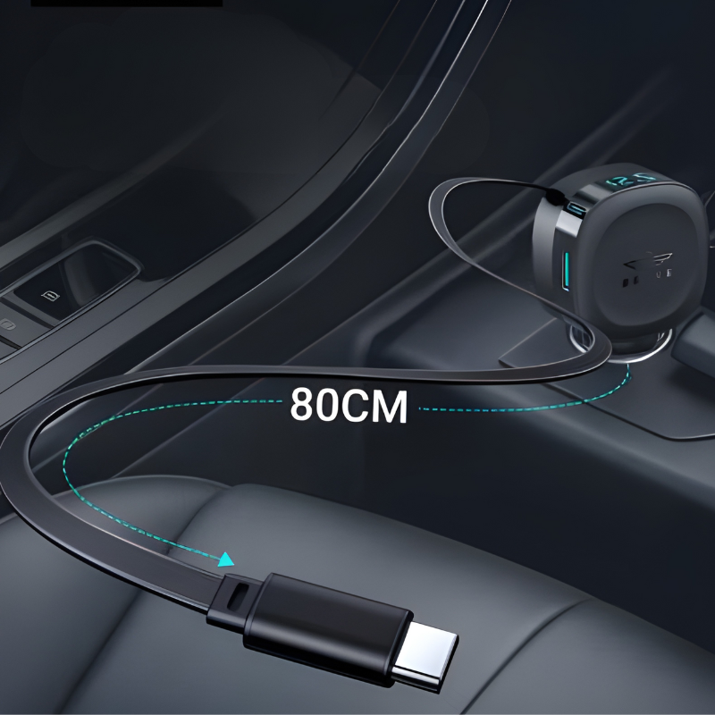 كابل USB-C مدمج قابل للسحب بقوة 30 وات، ومنفذي USB-C/USB مزدوجين، وشاشة عرض ذكية للجهد - يوفر طاقة سريعة ومنظمة وعالمية لجميع أجهزتك أثناء القيادة.