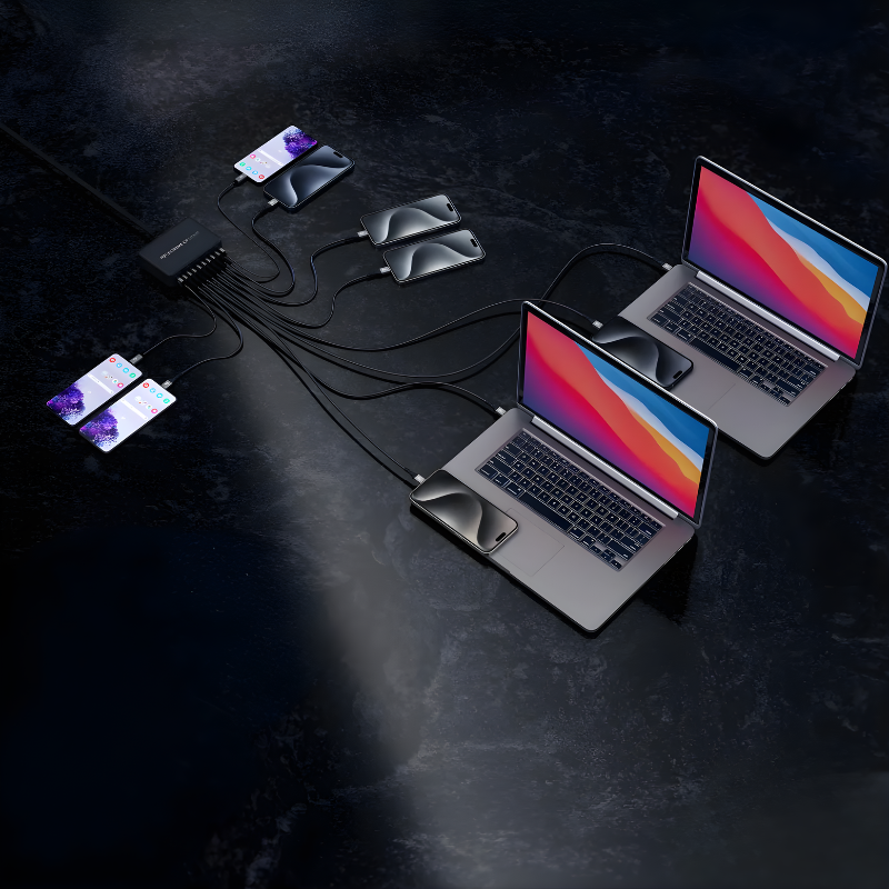 🔌10 منافذ USB (8× USB-C + 2× USB-A): يزيل العدد الهائل للمنافذ الحاجة إلى شواحن متعددة، مما يجعله مثاليًا للعائلات والمكاتب ومستخدمي الأجهزة المتعددة.