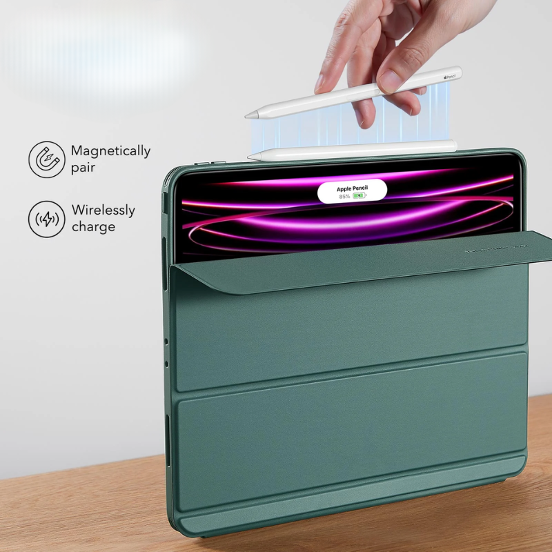 Its intelligent trifold design creates the perfect angles for work and viewing, while dedicated Pencil integration keeps your stylus secure, charged, and ready.